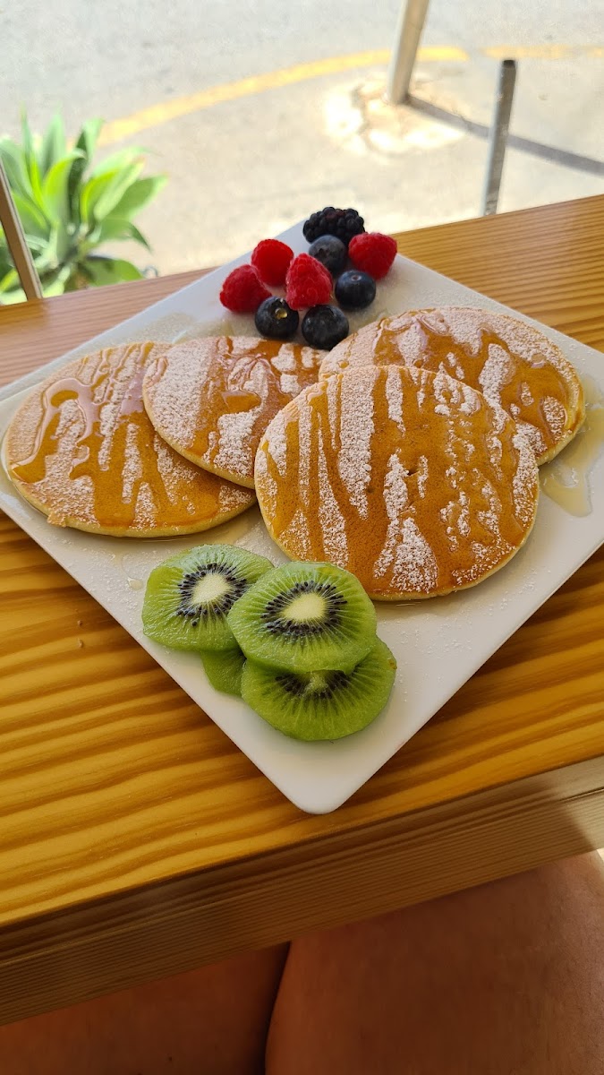 We came here for breakfast and it didn't disappoint! The food and drinks are super affordable and fresh. We got 2 lattes, a Pastel de nata, the pancakes with fruit, and the ham, cheese, egg toast. The toast was definitely our favorite it was so good that I had to eat it all even though I was so full. The pancakes weren't the fluffiest but they were great with the fruit! The owner (I'm guessing) was really sweet and spoke English for us. Definitely recommend this budget-friendly, cute Cafe!
